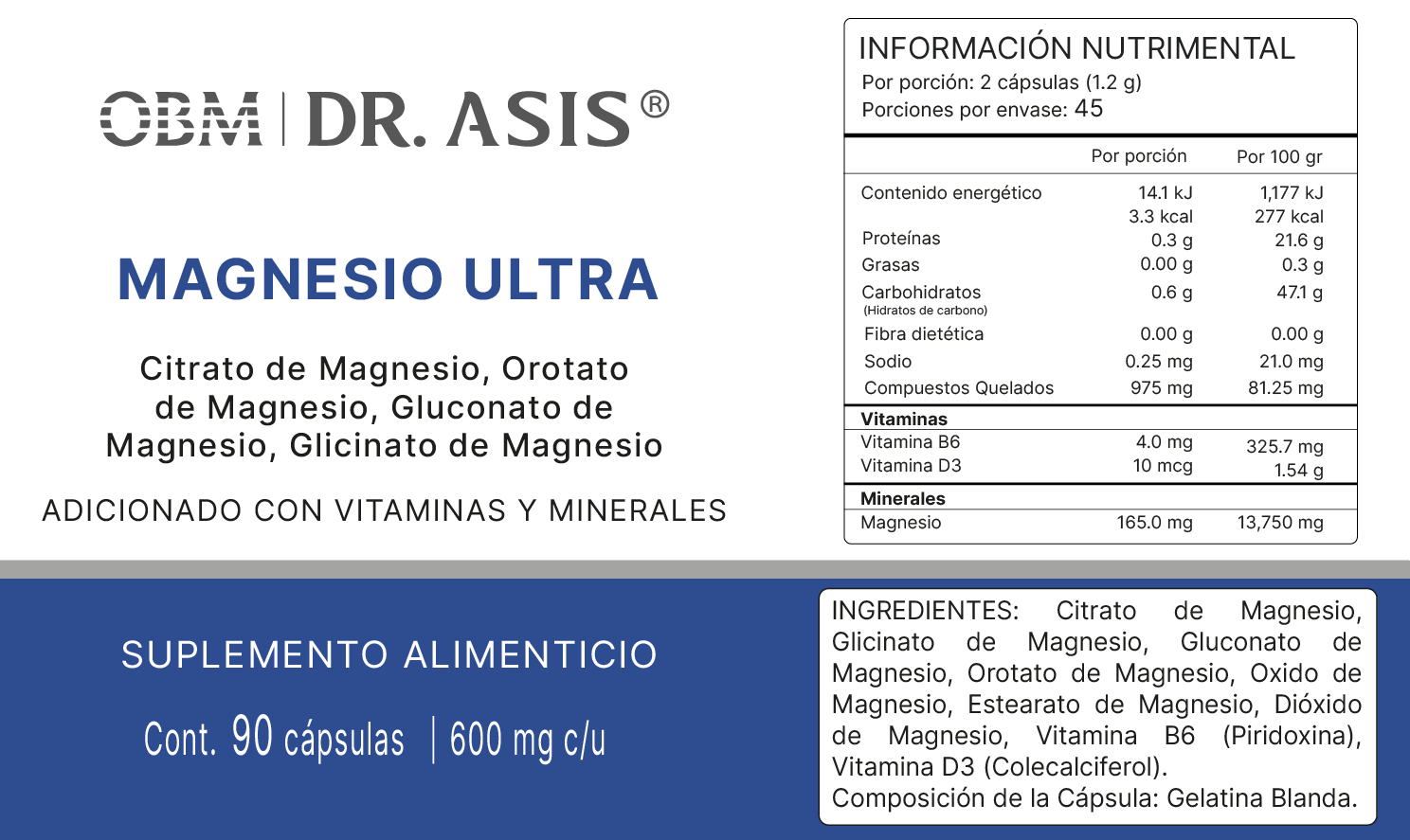 Magnesio Ultra combina cuatro formas altamente biodisponibles de magnesio —citrato, orotato, gluconato y glicinato— diseñadas para apoyar de manera equilibrada el funcionamiento del cuerpo,